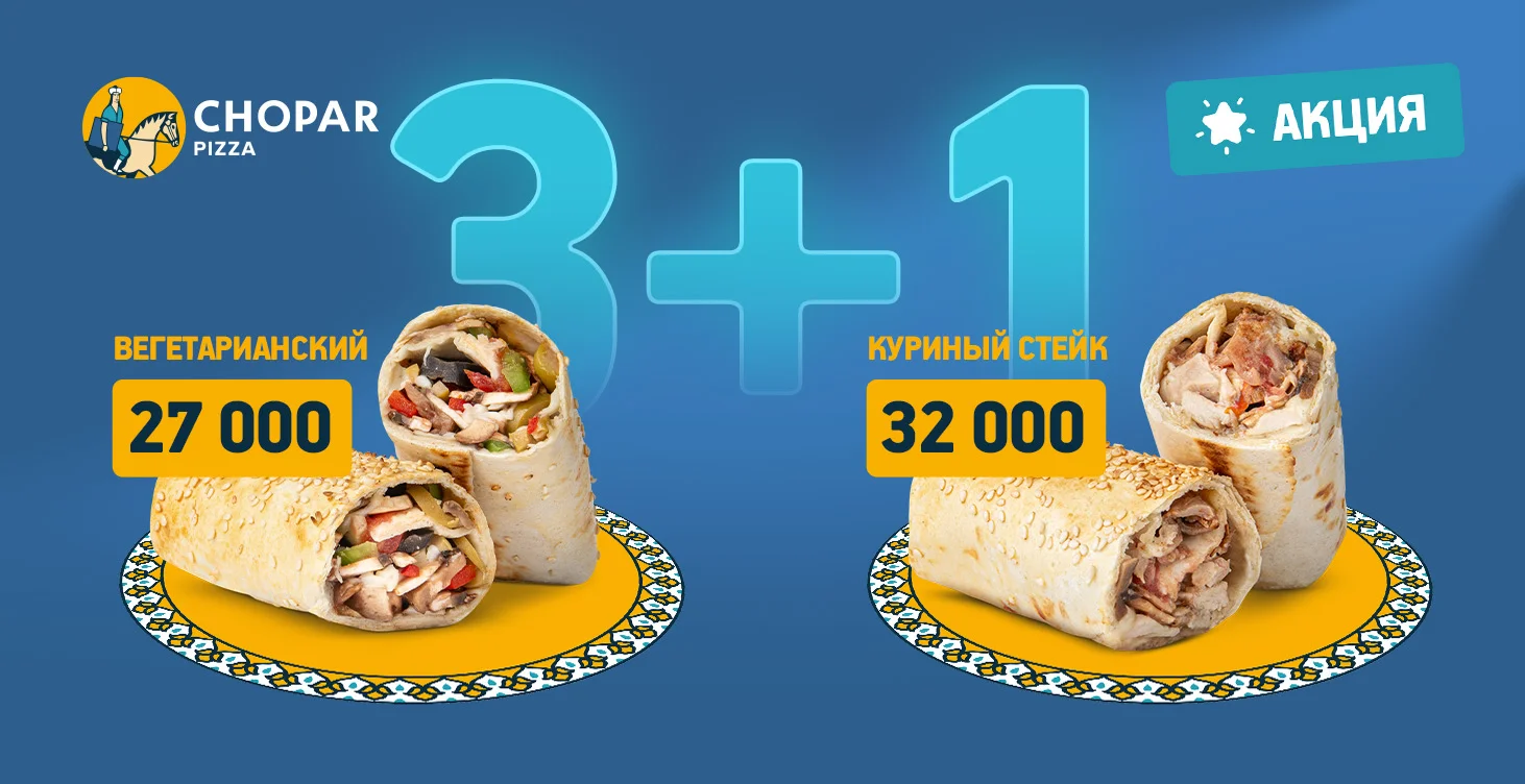 4 лаваша Куриный стейк по цене 3x.
