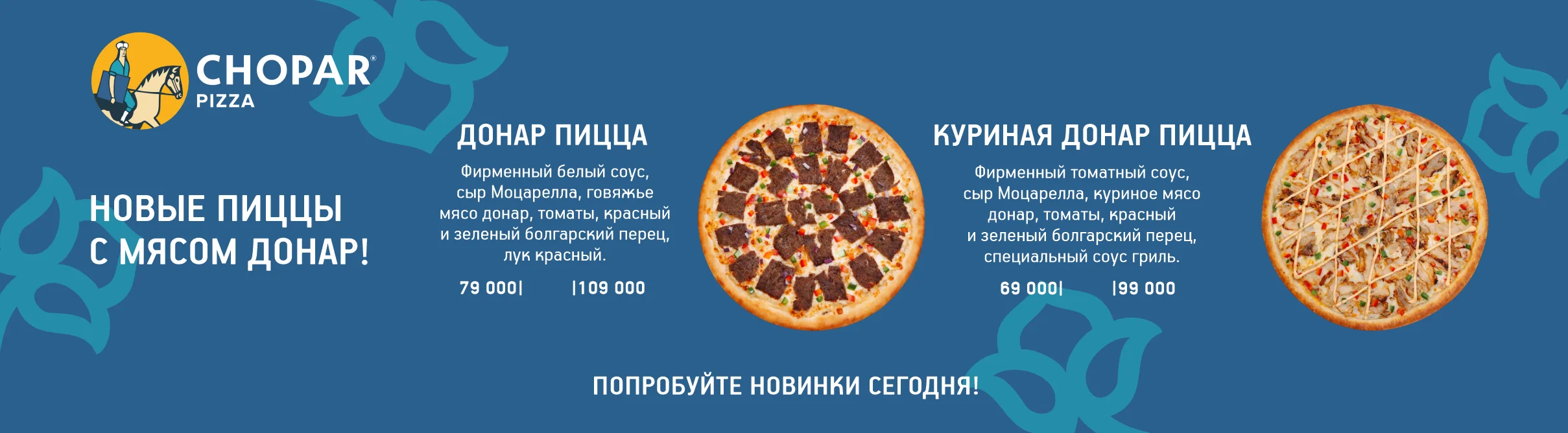 Сочная курица донар на фирменном томатном соусе, тянущаяся моцарелла, свежие томаты и болгарский перец. Мягкий, ароматный и сбалансированный вкус.